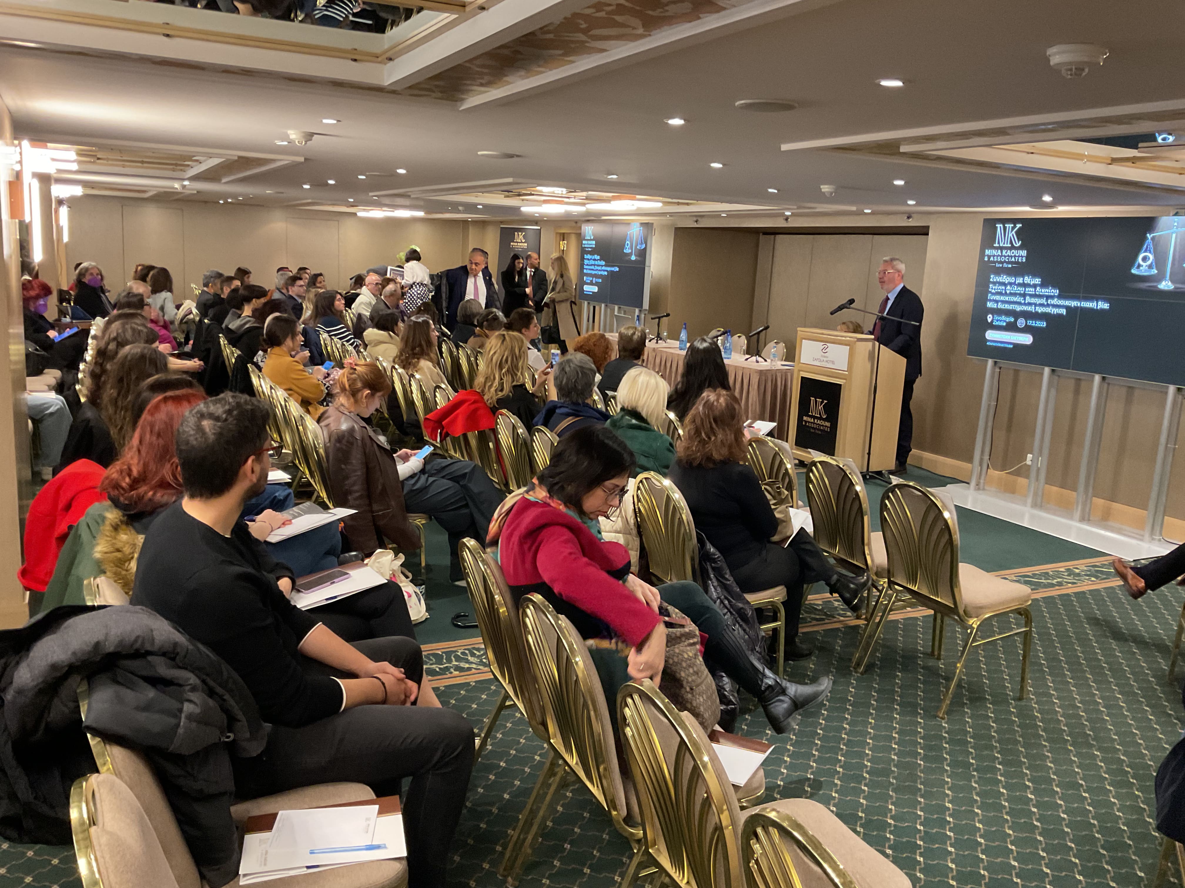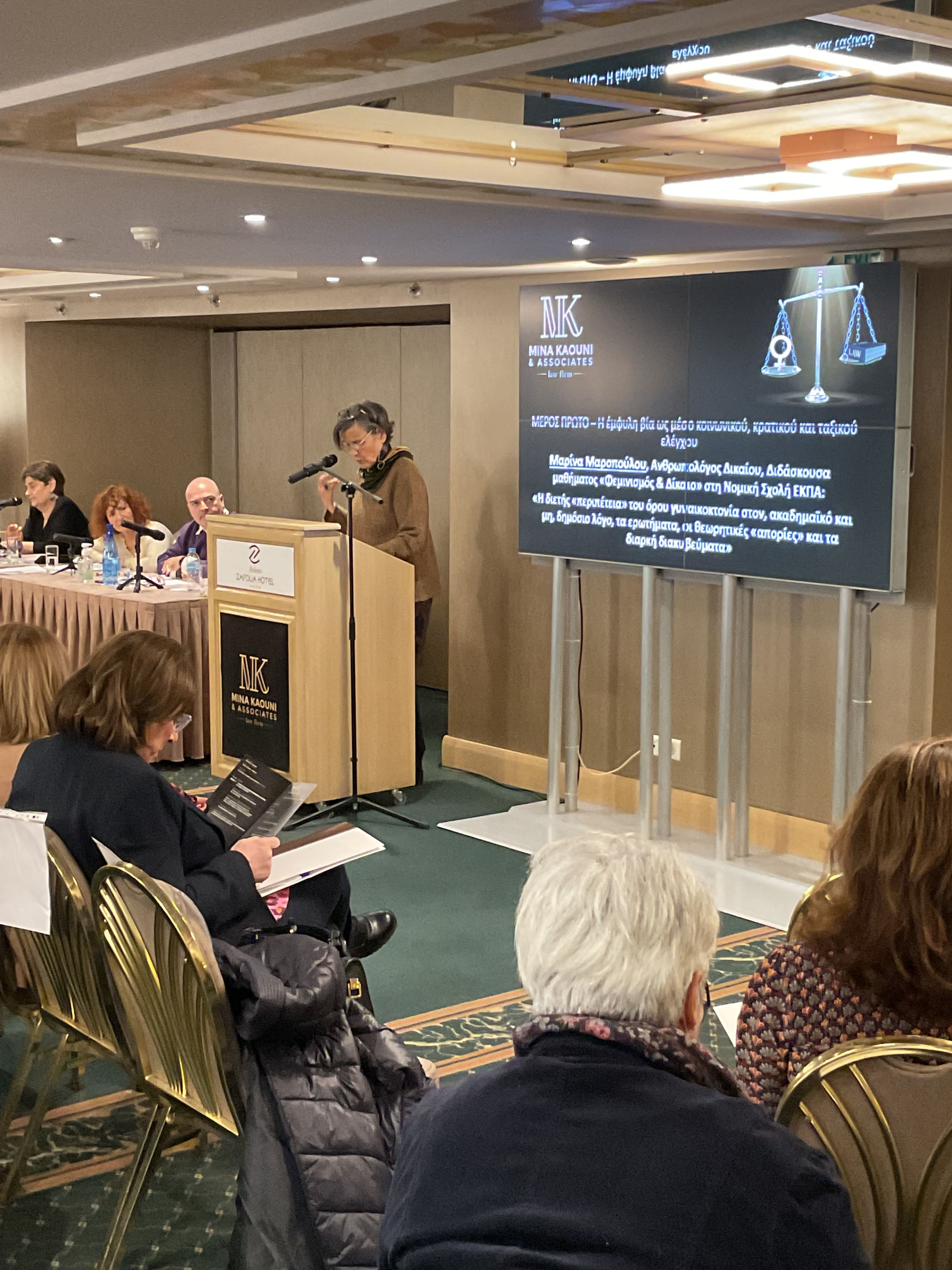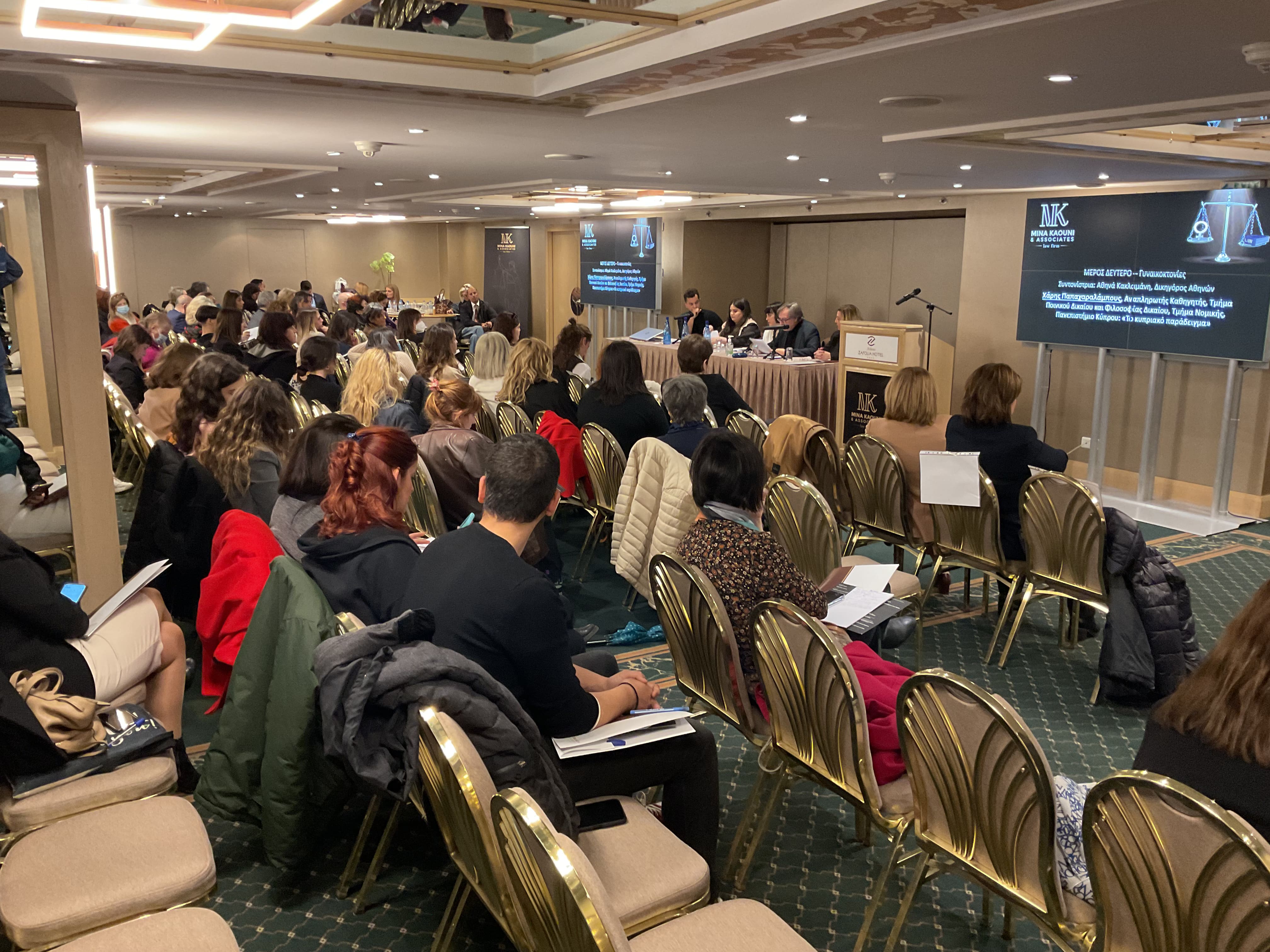 Όπως είπε και η επικεφαλής του γραφείου μας Μίνα Καούνη στην εισαγωγική της ομιλία, το συνέδριο αυτό ήταν  αποτέλεσμα  της οργής και της αγανάκτησης, όταν παρακολουθούμε αμιγώς νομικά συνέδρια αναφορικά με το θέμα της έμφυλης βίας και βλέπουμε πόση δυσφορία, ανατριχίλα σχεδόν , αισθάνονται οι ομιλητές και μόνο στο άκουσμα της λέξης γυναικοκτονία , σπεύδοντας με ορμή να δηλώσουν την επίσημη αποστροφή τους σε έναν όρο, θεωρώντας ότι η αποδοχή του θα μείωνε την επιστημονική τους επάρκεια και νομική σοβαρότητα. Υπάρχουν θέματα ταμπού, που δεν πρέπει να συζητούνται στα επιστημονικά συνέδρια κι ας υπάρξει μεγάλη διαμάχη; Αυτό δεν  σημαίνει εξέλιξη στη νομική σκέψη κι επιστήμη ;  Αυτός δεν πρέπει να είναι ο πρωταρχικός στόχος ενός φρέσκου κι ανήσυχου νομικού μυαλού ;